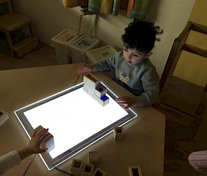Im Rahmen einer spannenden Experimentierphase in der Gruppe 2 entdeckten die Kinder die faszinierende Welt des Lichts und der Farben am Leuchttisch. Durch das Zusammenspiel von Licht und bunten Fensterbausteinen entstanden leuchtende Farbenspiele, die großes Staunen und Interesse auslösten. Die Kinder erkundeten die unterschiedlichen Farbnuancen, bewunderten Lichtreflexe und setzten geometrische Plättchen kreativ ein, um Muster zu legen und Formen zu sortieren.