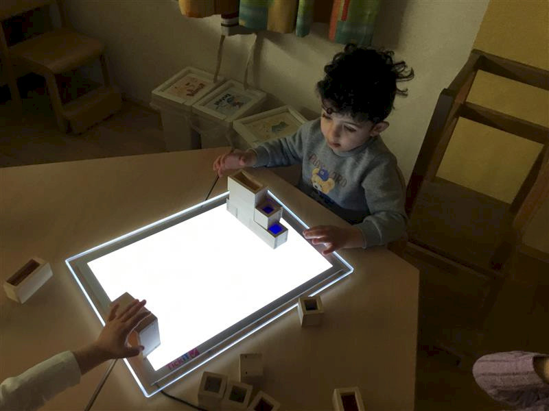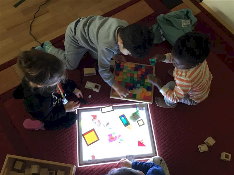 Im Rahmen einer spannenden Experimentierphase in der Gruppe 2 entdeckten die Kinder die faszinierende Welt des Lichts und der Farben am Leuchttisch. Durch das Zusammenspiel von Licht und bunten Fensterbausteinen entstanden leuchtende Farbenspiele, die großes Staunen und Interesse auslösten. Die Kinder erkundeten die unterschiedlichen Farbnuancen, bewunderten Lichtreflexe und setzten geometrische Plättchen kreativ ein, um Muster zu legen und Formen zu sortieren.