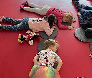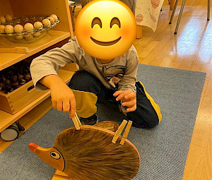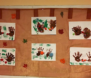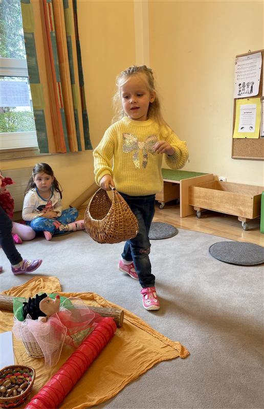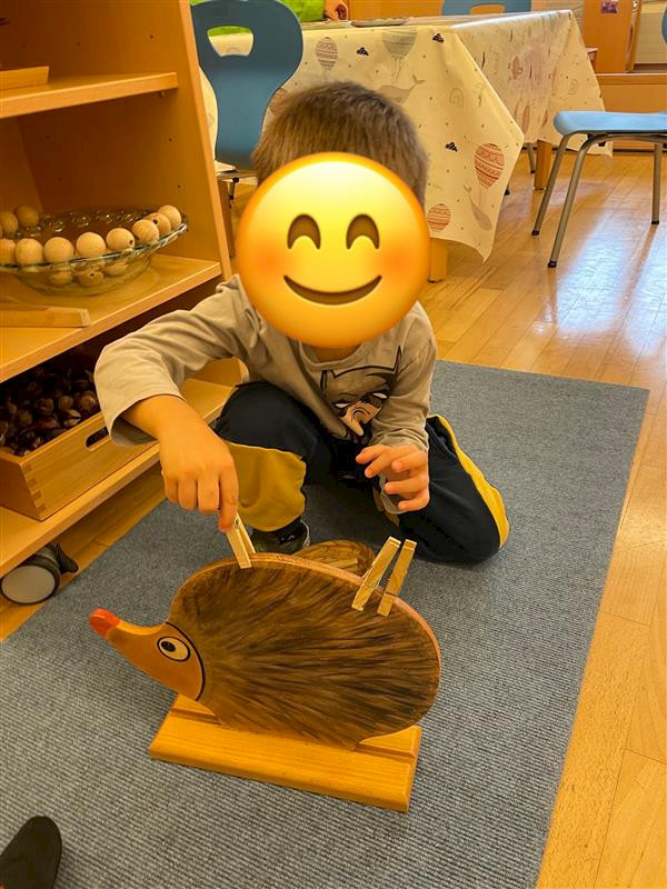 Die Kinder der Gruppe 3 sind erfolgreich in das neue Kindergartenjahr gestartet. Alltägliche Abläufe sowie die Gruppenregeln werden kindgerecht vermittelt. Dabei begleiten die Handpuppen Schlingel (Fuchs) und Isidor (Igel) die Kinder in ihren ersten Wochen. Gemeinsam mit den pädagogischen Fachkräften unterstützen die kuscheligen Gefährten die Kinder beim Erlernen von Liedern, Gedichten und Fingerspielen. Sie regen dazu an, sich mit den Phänomenen der Jahreszeit Herbst zu beschäftigen. Zusammen mit ihren Familien sammeln die Kinder fleißig Kastanien, die sie in den Kindergarten mitbringen. Diese werden in der Raumgestaltung und Aktivitätenplanung eingesetzt, um spielerisch verschiedene Kompetenzen zu fördern. Es entstehen Kastanienketten, es werden Kastanienmassagen durchgeführt und kreative Kastanienlegebilder gestaltet. Eine Kastanienwanne lädt zum sensorischen Erleben ein. Zusätzlich gestalten die Kinder individuelle Igelbilder aus ihren Handabdrücken. Die Formen und Strukturen von Herbstblättern lernen die Kinder durch Frottagetechnik kennen. Auch bei der Auswahl von Liedern, Gedichten und Sprüchen werden die Interessen der Kinder aufgegriffen.