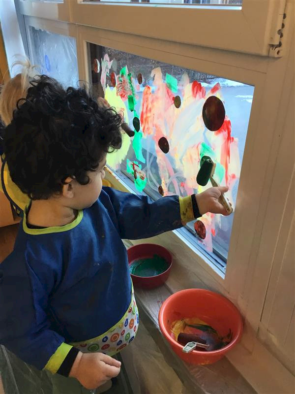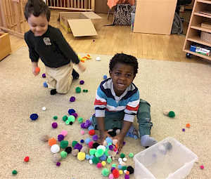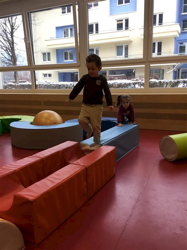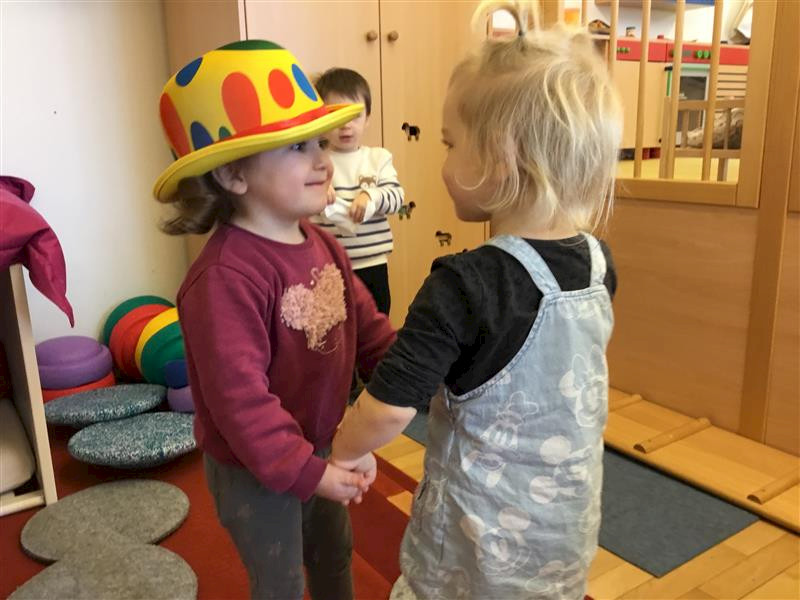 Mit viel Freude haben die Kinder aus der Gruppe 2 den Gruppenraum zum Faschingsthema „Zirkus“ umgestaltet. Nicht nur Papier, sondern auch Fenster und Glastüren wurden beklebt und mit Farben gewalzt. Gefaltete Papierhüte wurden kreativ beklebt, Fotos von den Kindern verwandelten sich in Clowns. Bunte Pompons nutzen die Mädchen und Buben zum Legen von Mustern. Konzentriert arbeiten die Kinder beim Auffädeln von unterschiedlichen Materialien. Ein lustiges Lied hat zum Clowntanz mit anderen Kindern motiviert.