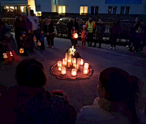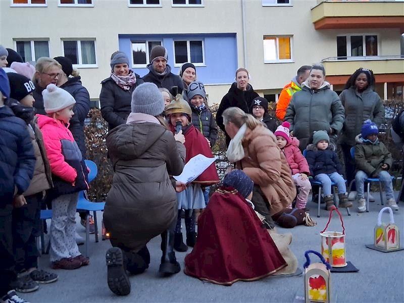 Im Garten versammelten sich die Kinder um eine große Laterne, sangen Lieder und tanzten einen Lichtertanz. Ein Höhepunkt war das Martinsspiel, bei dem die Bedeutung des Teilens lebendig wurde. Anschließend schlängelte sich der festliche Laternenumzug entlang der Salzach – die Lichter der Laternen erhellten die Nacht und sorgten für eine besondere Atmosphäre.