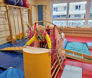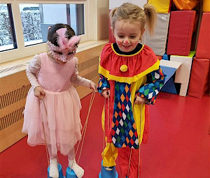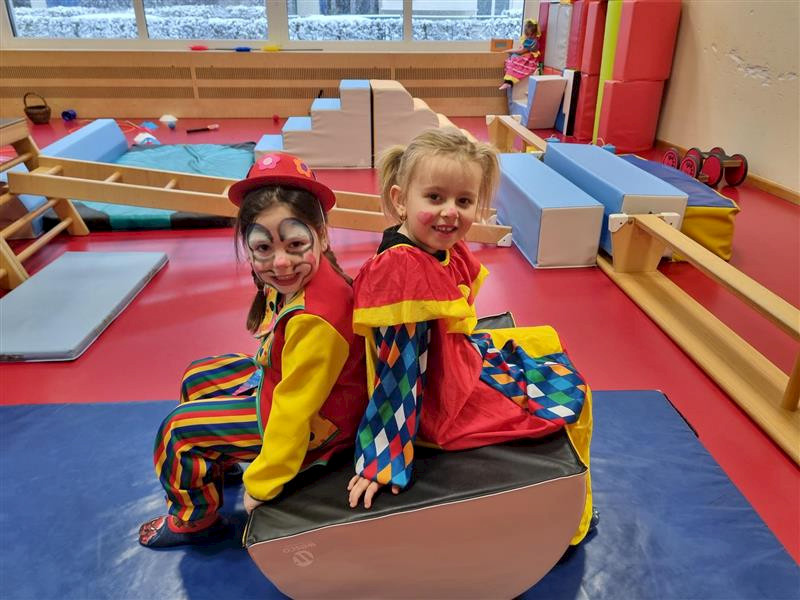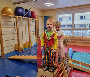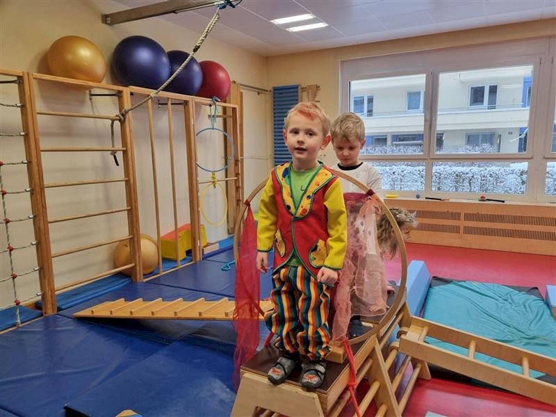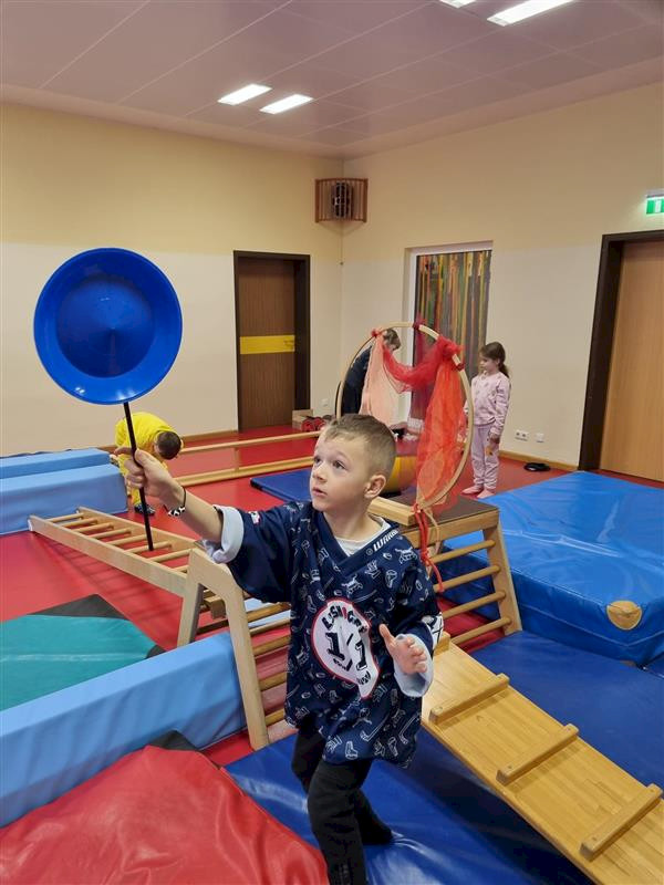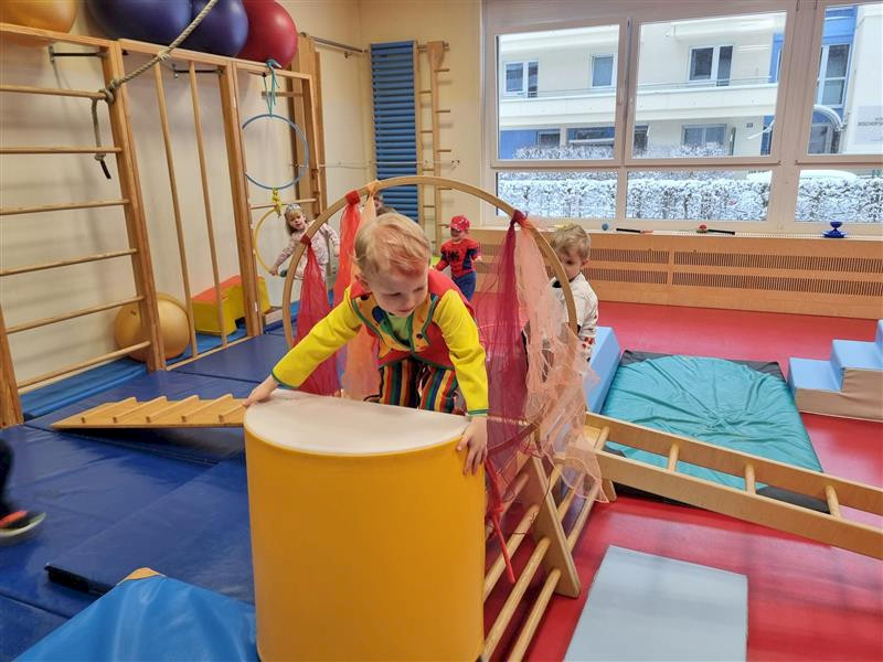Am Faschingsmontag verwandelte sich unser Kindergarten in eine bunte Welt voller Magie, Mut und Bewegung. Unter dem Motto „Zirkusschule Simplikus“ wurde unser Bewegungsraum zur großen Manege, in der die Kinder in verschiedene Rollen schlüpfen und ihre eigenen Zirkuskunststücke ausprobieren konnten.