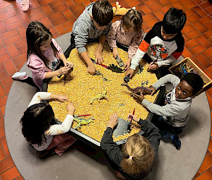 Ein ganz besonderes Highlight ist die neue Maiswanne! In ihr können die Kinder mit allen Sinnen eintauchen, Schütten, Fühlen, Graben und Verstecken. Diese taktile Erfahrung fördert nicht nur die sensorische Wahrnehmung, sondern wirkt auch beruhigend und konzentrationsfördernd.