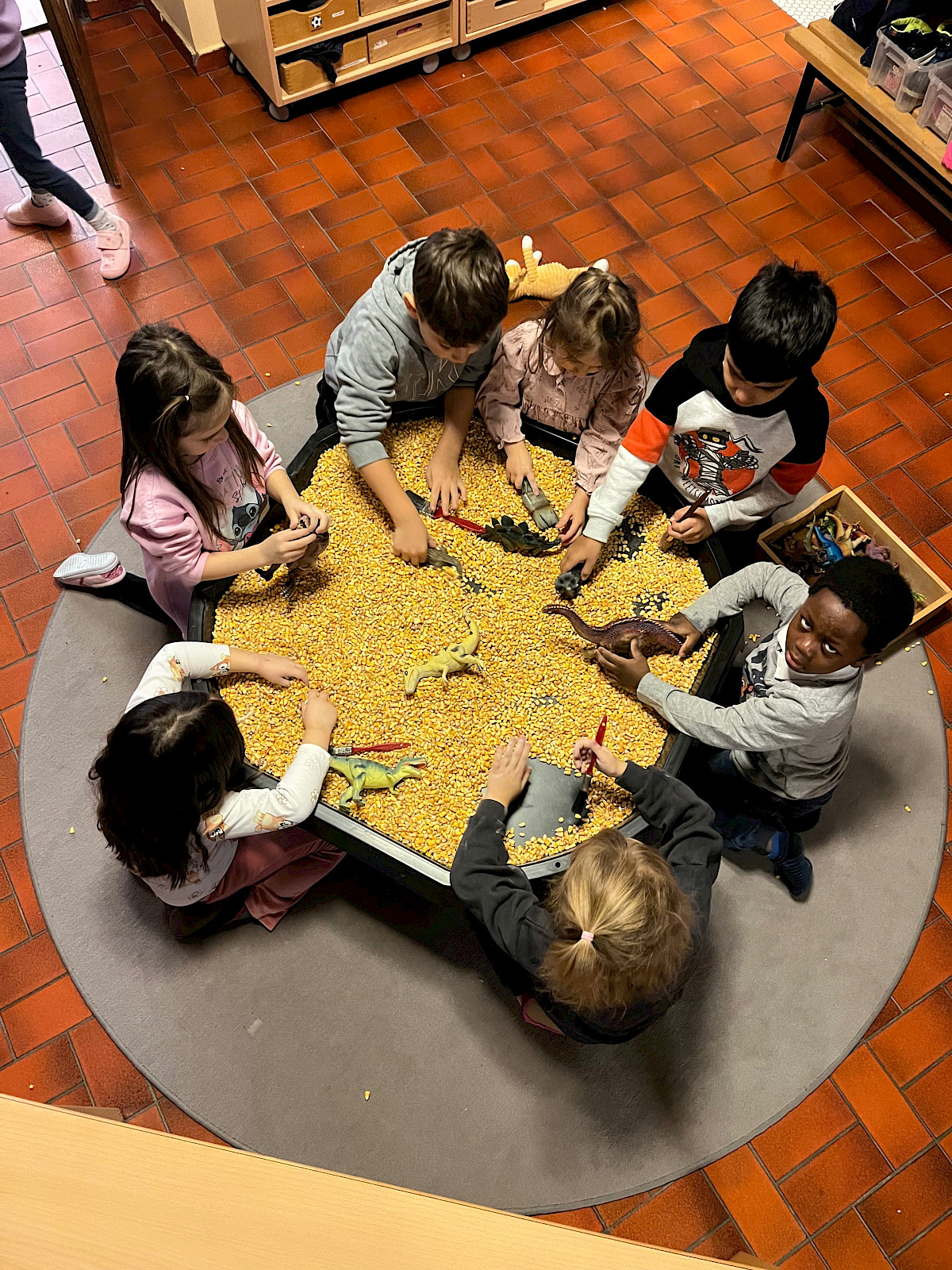 Ein ganz besonderes Highlight ist die neue Maiswanne! In ihr können die Kinder mit allen Sinnen eintauchen, Schütten, Fühlen, Graben und Verstecken. Diese taktile Erfahrung fördert nicht nur die sensorische Wahrnehmung, sondern wirkt auch beruhigend und konzentrationsfördernd.
