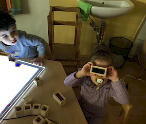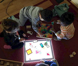Im Rahmen einer spannenden Experimentierphase in der Gruppe 2 entdeckten die Kinder die faszinierende Welt des Lichts und der Farben am Leuchttisch. Durch das Zusammenspiel von Licht und bunten Fensterbausteinen entstanden leuchtende Farbenspiele, die großes Staunen und Interesse auslösten. Die Kinder erkundeten die unterschiedlichen Farbnuancen, bewunderten Lichtreflexe und setzten geometrische Plättchen kreativ ein, um Muster zu legen und Formen zu sortieren.