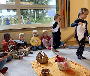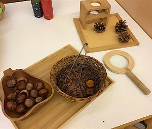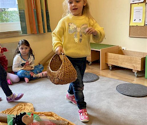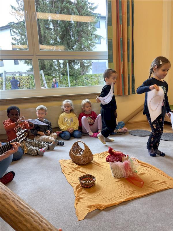 Die Kinder der Gruppe 3 sind erfolgreich in das neue Kindergartenjahr gestartet. Alltägliche Abläufe sowie die Gruppenregeln werden kindgerecht vermittelt. Dabei begleiten die Handpuppen Schlingel (Fuchs) und Isidor (Igel) die Kinder in ihren ersten Wochen. Gemeinsam mit den pädagogischen Fachkräften unterstützen die kuscheligen Gefährten die Kinder beim Erlernen von Liedern, Gedichten und Fingerspielen. Sie regen dazu an, sich mit den Phänomenen der Jahreszeit Herbst zu beschäftigen. Zusammen mit ihren Familien sammeln die Kinder fleißig Kastanien, die sie in den Kindergarten mitbringen. Diese werden in der Raumgestaltung und Aktivitätenplanung eingesetzt, um spielerisch verschiedene Kompetenzen zu fördern. Es entstehen Kastanienketten, es werden Kastanienmassagen durchgeführt und kreative Kastanienlegebilder gestaltet. Eine Kastanienwanne lädt zum sensorischen Erleben ein. Zusätzlich gestalten die Kinder individuelle Igelbilder aus ihren Handabdrücken. Die Formen und Strukturen von Herbstblättern lernen die Kinder durch Frottagetechnik kennen. Auch bei der Auswahl von Liedern, Gedichten und Sprüchen werden die Interessen der Kinder aufgegriffen.