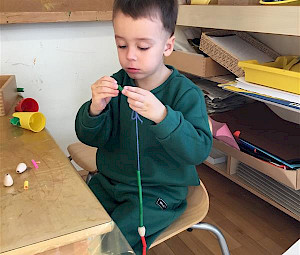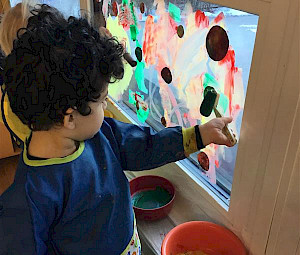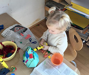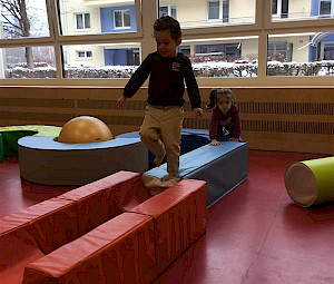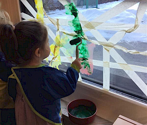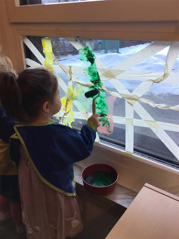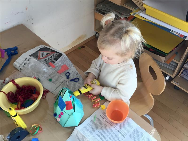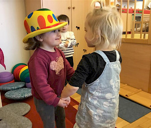 Mit viel Freude haben die Kinder aus der Gruppe 2 den Gruppenraum zum Faschingsthema „Zirkus“ umgestaltet. Nicht nur Papier, sondern auch Fenster und Glastüren wurden beklebt und mit Farben gewalzt. Gefaltete Papierhüte wurden kreativ beklebt, Fotos von den Kindern verwandelten sich in Clowns. Bunte Pompons nutzen die Mädchen und Buben zum Legen von Mustern. Konzentriert arbeiten die Kinder beim Auffädeln von unterschiedlichen Materialien. Ein lustiges Lied hat zum Clowntanz mit anderen Kindern motiviert.