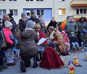 Im Garten versammelten sich die Kinder um eine große Laterne, sangen Lieder und tanzten einen Lichtertanz. Ein Höhepunkt war das Martinsspiel, bei dem die Bedeutung des Teilens lebendig wurde. Anschließend schlängelte sich der festliche Laternenumzug entlang der Salzach – die Lichter der Laternen erhellten die Nacht und sorgten für eine besondere Atmosphäre.