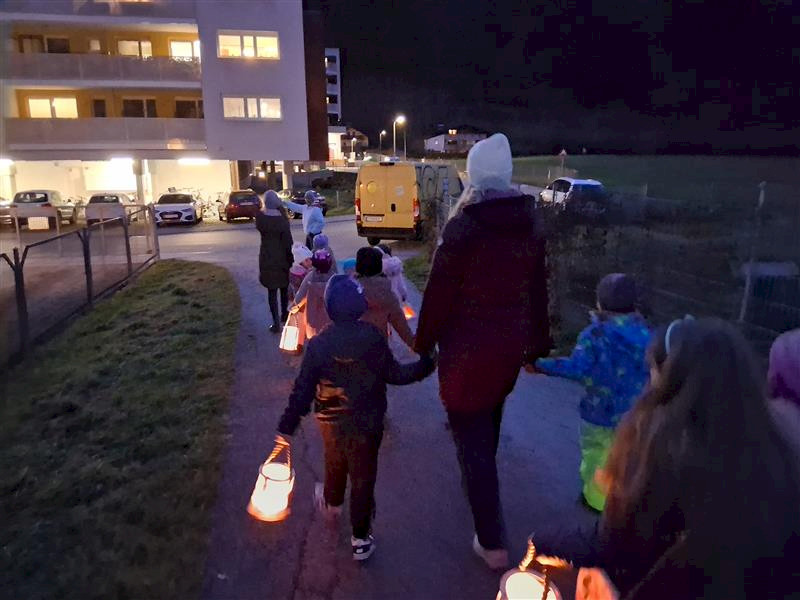 Im Garten versammelten sich die Kinder um eine große Laterne, sangen Lieder und tanzten einen Lichtertanz. Ein Höhepunkt war das Martinsspiel, bei dem die Bedeutung des Teilens lebendig wurde. Anschließend schlängelte sich der festliche Laternenumzug entlang der Salzach – die Lichter der Laternen erhellten die Nacht und sorgten für eine besondere Atmosphäre.