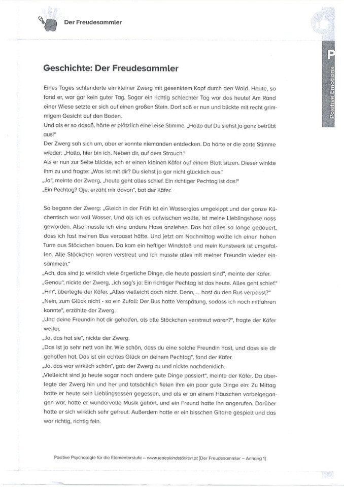 - P – Positive Emotionen: Freude erleben, Gefühle wahrnehmen und benennen