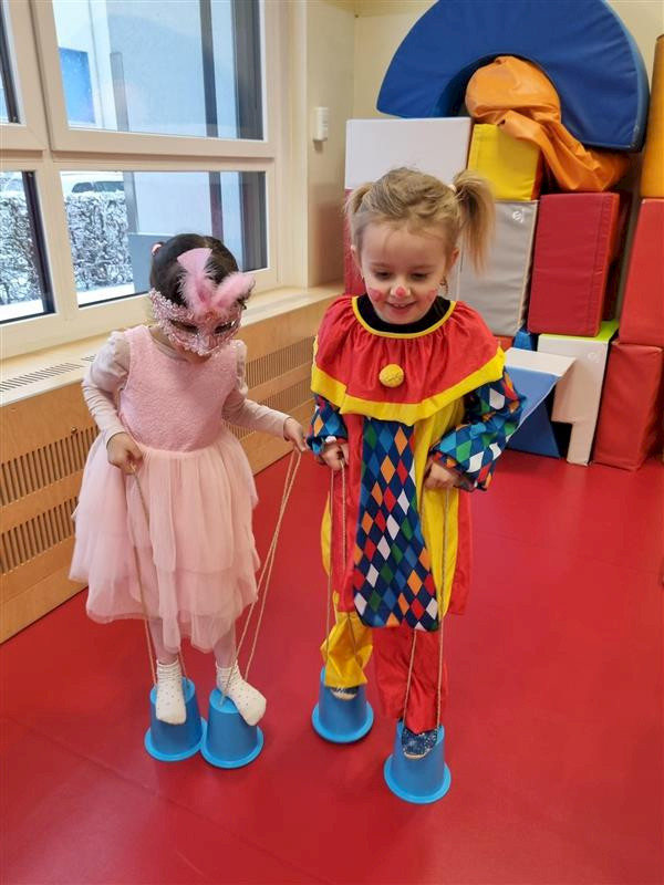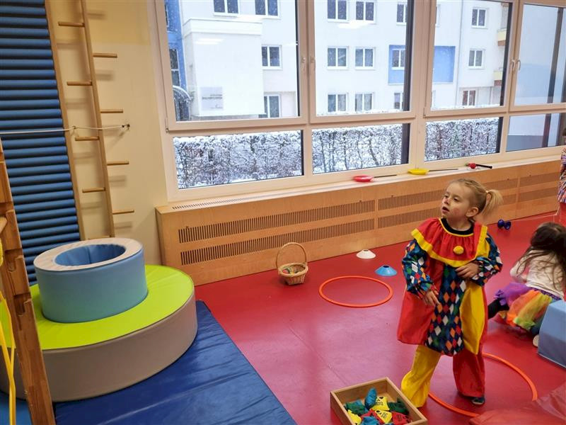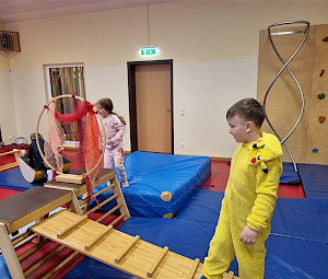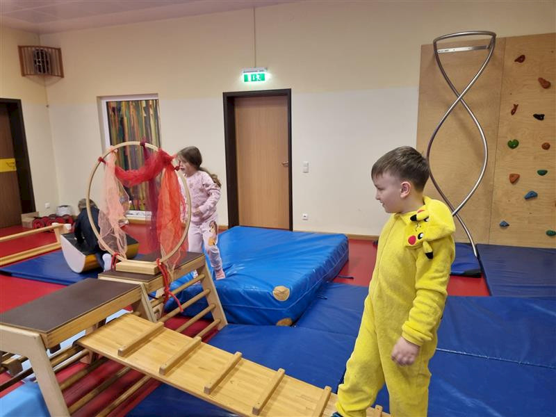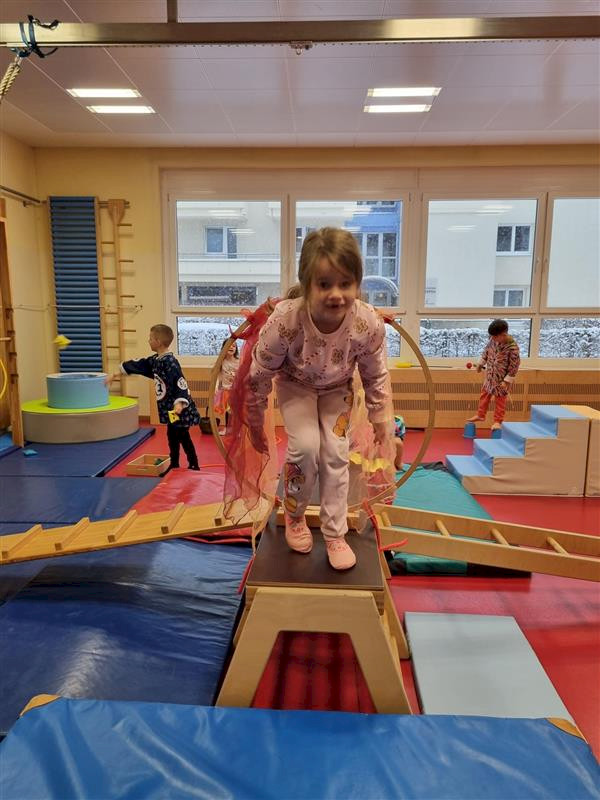 Am Faschingsmontag verwandelte sich unser Kindergarten in eine bunte Welt voller Magie, Mut und Bewegung. Unter dem Motto „Zirkusschule Simplikus“ wurde unser Bewegungsraum zur großen Manege, in der die Kinder in verschiedene Rollen schlüpfen und ihre eigenen Zirkuskunststücke ausprobieren konnten.
