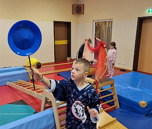 Mit strahlenden Augen balancierten die kleinen Artistinnen und Artisten über schmale Wege, sprangen mutig durch einen „brennenden“ Reifen und probierten sich an echtem Zirkusmaterial aus. Ob Diabolo, Stelzen gehen oder Teller balancieren – jedes Kind fand seine Lieblingsdisziplin und zeigte beeindruckende Geschicklichkeit.
